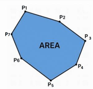 Area = ½ × [Σ(x₁y₂ + x₂y₃ + … + xₙy₁ − y₁x₂ − y₂x₃ − … − yₙx₁)]