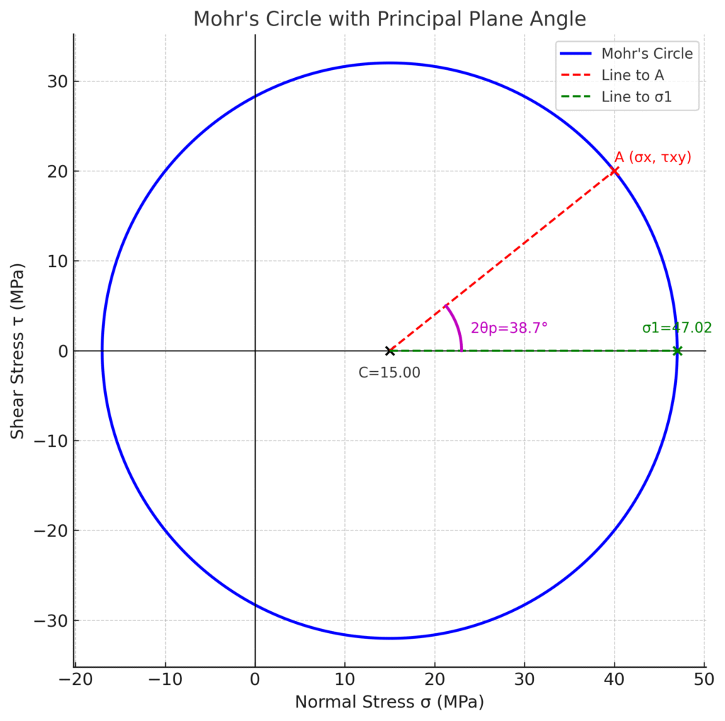 Input σₓ, σᵧ, and τₓᵧ to compute and visualize Principal Stresses (σ₁, σ₂)Maximum Shear Stress (τₘₐₓ), Rotation Angle (θₚ) and Von Mises Stress (σVM) on Mohr’s Circle.